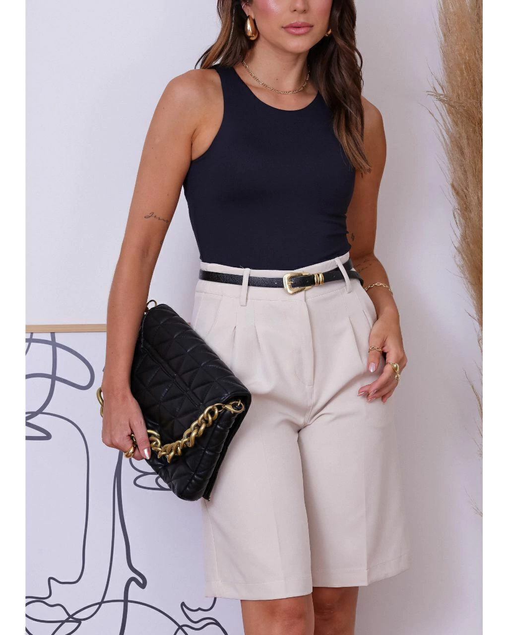 A Bermuda Jorts de Alfaiataria é a escolha perfeita para quem busca uma peça versátil e elegante para diversas ocasiões. Com modelagem ampla, especialmente nas coxas, o design solto garante conforto e liberdade de movimento sem apertar o corpo. Ideal para looks sociais, casuais ou até mesmo para baladas, essa bermuda combina sofisticação e praticidade, sendo facilmente adaptada com tênis, salto alto ou outros acessórios.