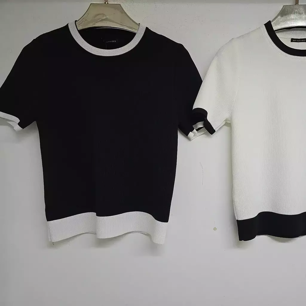 Com modelagem clássica de mangas curtas, a blusa traz o charme do contraste bicolor nas golas, barras e punhos, criando um visual minimalista, atemporal e fácil de combinar. O tricot em modal oferece leve elasticidade e sensação suave na pele, tornando a peça ideal para quem busca elegância com conforto absoluto.