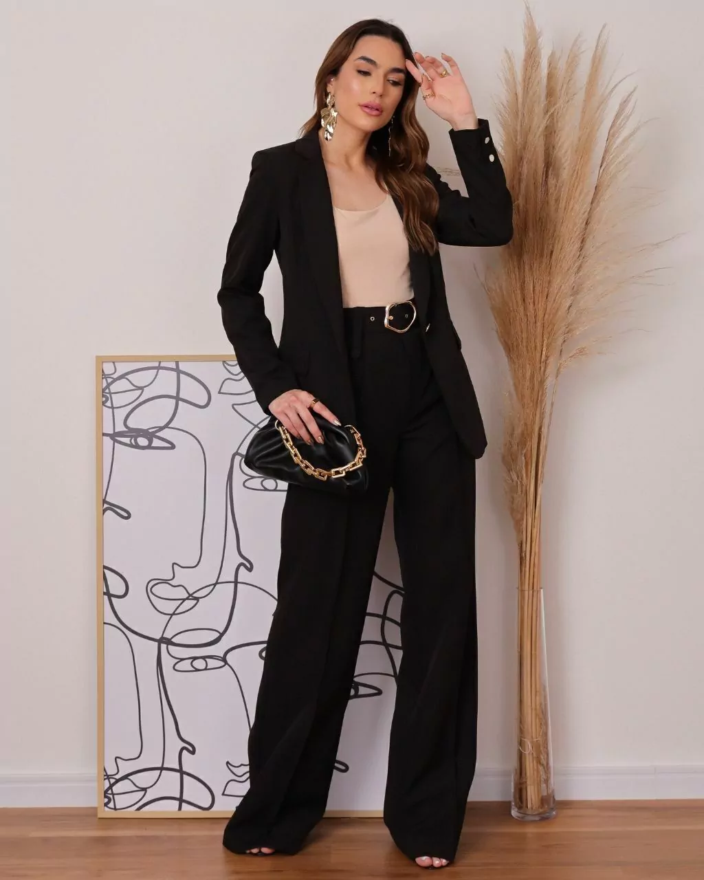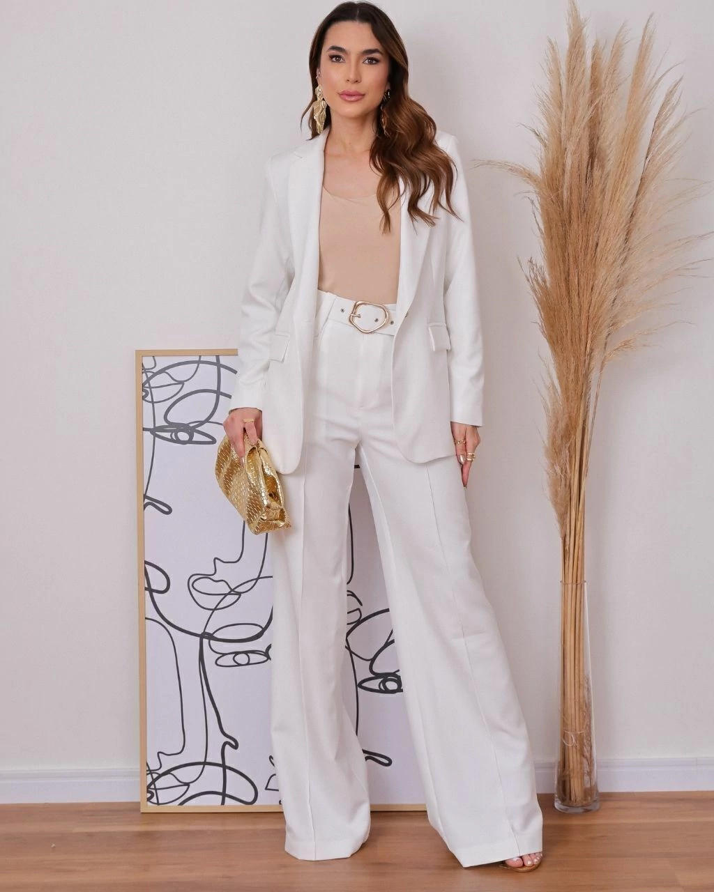 Adquira o visual completo com um único clique. Este conjunto exclusivo reúne duas das peças mais desejadas da nossa alfaiataria premium: o Blazer Alongado Stella com Botões em Madrepérola e a Calça Pantalona com Cinto Carolina, formando uma combinação elegante e sofisticada.