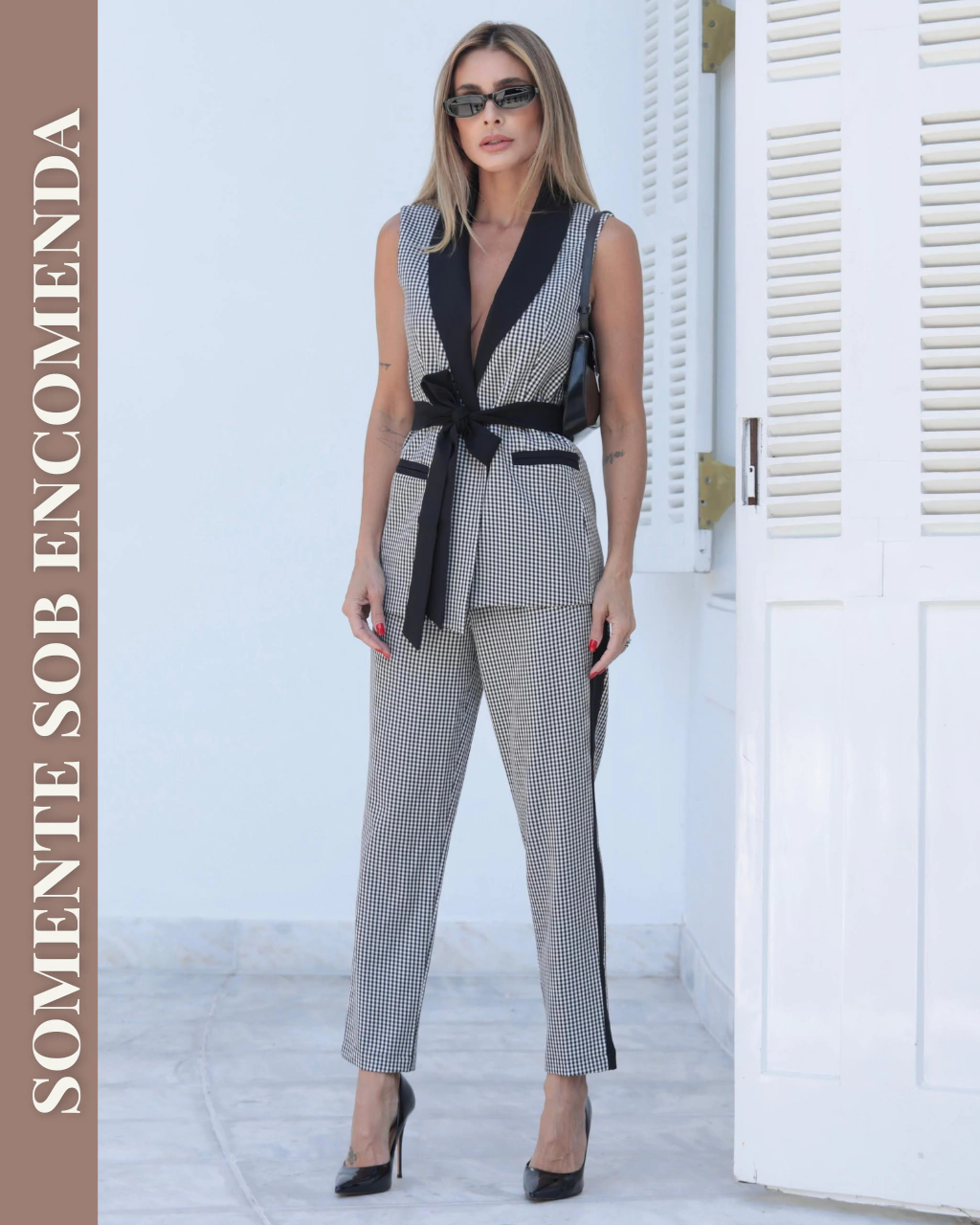 Adquira o visual completo com um único clique! Este conjunto exclusivo combina o Colete de Alfaiataria Alongado Cintia Xadrez e a Calça de Alfaiataria Cintura Alta com Zíper Jéssica Xadrez. As peças são vendidas no mesmo tamanho, garantindo uma combinação perfeita. Caso deseje adquirir tamanhos diferentes para o blazer e a calça, você pode comprá-los separadamente clicando aqui.