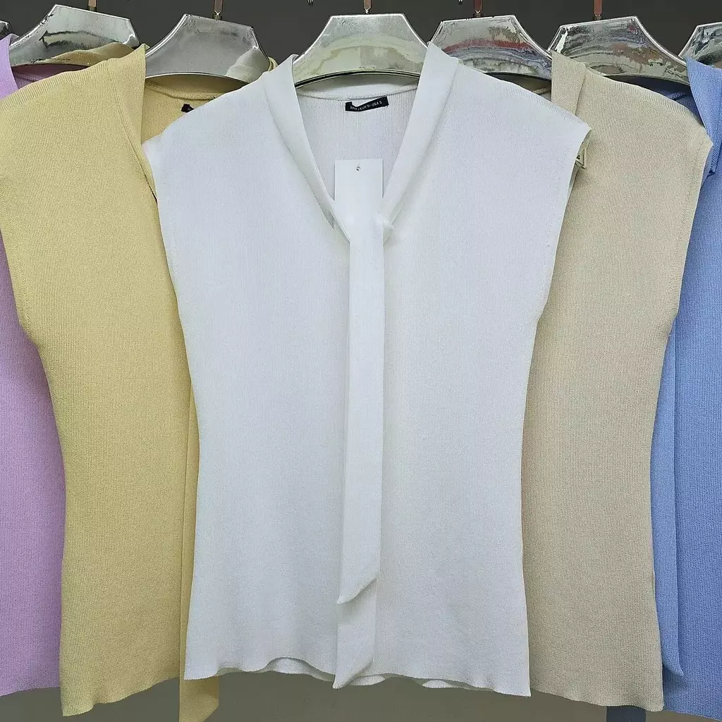 Blusa Regata em Tricot Modal com Gola Gravatinha